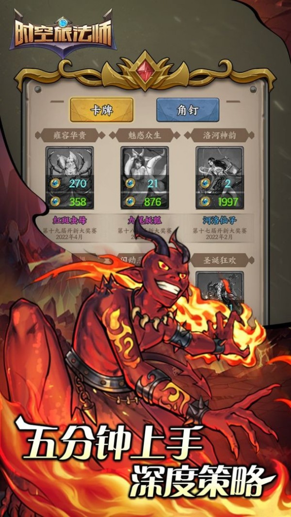 《时空旅法师》以其独特的九宫格棋盘玩法和卡牌附魔系统吸引了大量玩家。游戏中,玩家需要组建自己的套牌,并使用这些卡牌在战场上与对手进行对决。每个卡牌都有自己的四维攻击力,当玩家的卡牌与对手的卡牌相邻时,如果点数比对方大,就可以攻击并翻面对方的卡牌。游戏的目标是占领更多的格子,最终获得胜利。