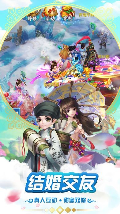 2、多元化的交友内容,玩家可以实时进行互动交流,邂逅美好佳人,然后携美浪漫修仙