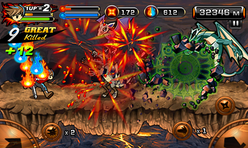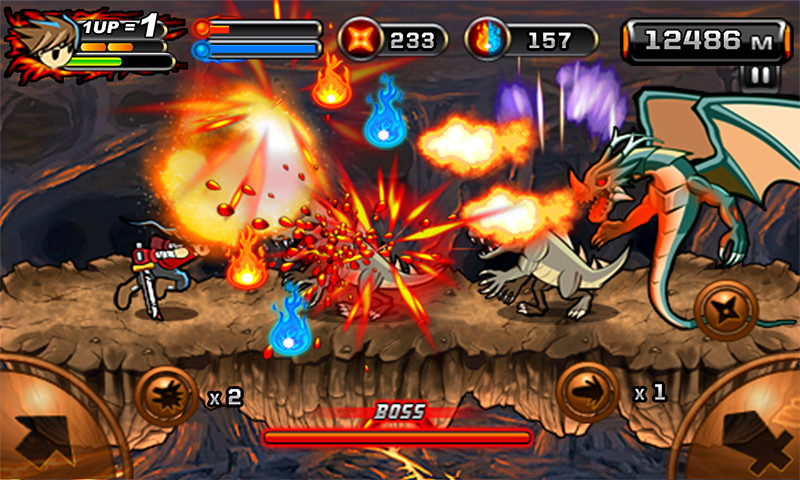 2. 屏幕右侧则用于控制忍者的攻击和释放技能。