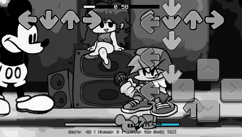 周五夜放克米老鼠黑白模组采用了独特的黑白画风,给人一种复古的游戏感受。在游戏中,玩家将跟随音乐的节奏与米老鼠一起舞动,通过点击屏幕上的箭头符号,与对手进行音乐对战。游戏拥有丰富的曲目和关卡,每个关卡都有不同的音乐和挑战,让玩家在游戏中感受到音乐的魅力和挑战的乐趣。