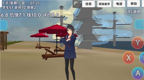 4. 互动与探索:玩家可以与NPC(非玩家角色)进行互动,如对话、赠送物品、攻击、提升/减少好感度等,同时自由穿梭于学校、家、体育馆、操场、神社、游泳池等多个场景之间。