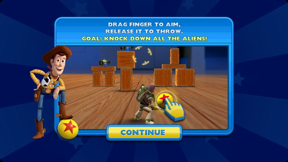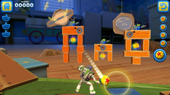 1. 角色控制:玩家可以通过屏幕上的按钮控制巴斯光年进行移动和投掷。