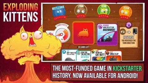 4. 策略对战:玩家需要根据手中的卡牌和场上的情况,策略性地出牌,以保护自己并试图让其他玩家抽到爆炸猫。