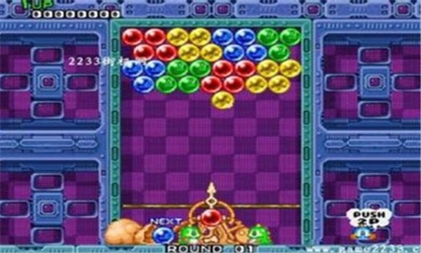 1. 发射泡泡:玩家从下方中央的弹珠发射台射出彩珠,目标是使屏幕上方的泡泡相连并消除。