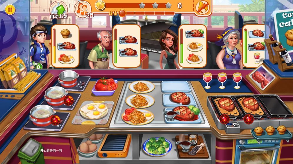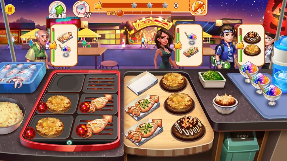 5. 升级与解锁:通过完成关卡获得金币和星星,用于升级技能和解锁更多关卡及食材。