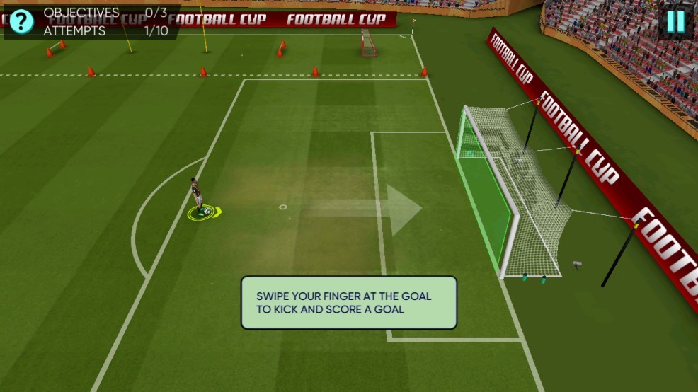- 熟练掌握滑动屏幕控制球员移动、传球、射门等动作。