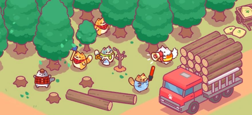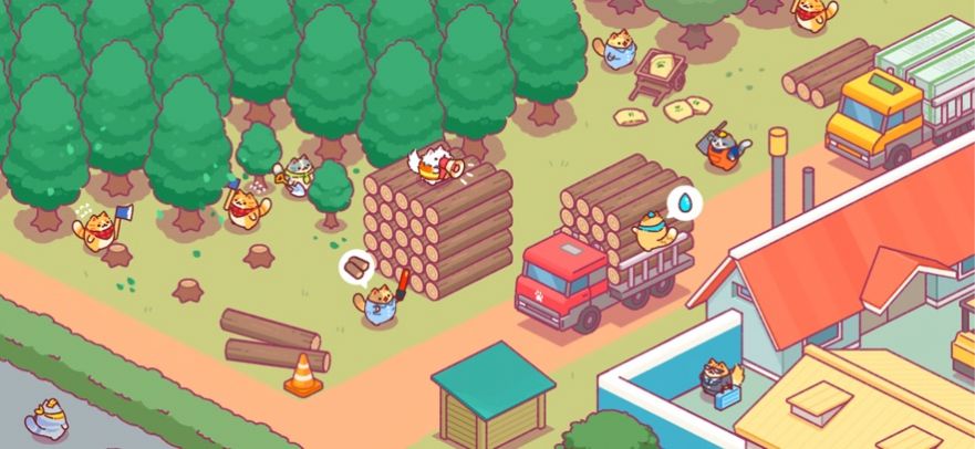 1. 伐木作业:玩家需要雇佣不同技能的伐木猫,在伐木场中砍伐树木。每只猫咪都有独特的外观和个性,通过不断的伐木作业,可以提升猫咪的等级和解锁更多的技能。