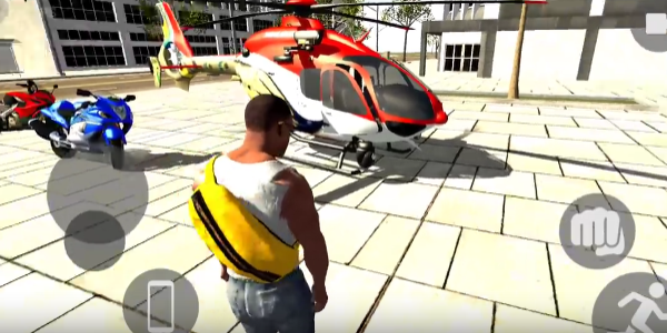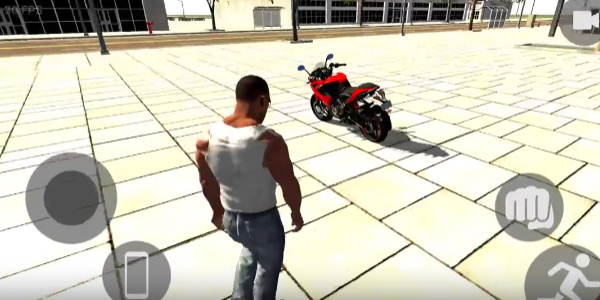 2. 上车准备:点击摩托车按键,戴好头盔上车。右下角的长条是开动摩托车的按键,左边的圆圈可以当方向盘使用,控制方向。