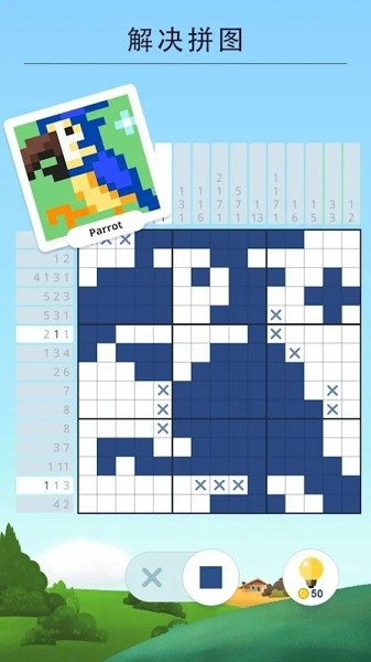 1. 观察数字线索:玩家需要仔细观察网格旁边的数字线索,这些数字表示该行或列中连续有色方块的长度。
