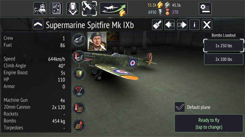 1. 多种战机选择:游戏提供了多种二战时期的经典战机供玩家选择,包括美国的P-51野马、英国的喷火式战斗机、德国的Me-262喷气式战斗机等。