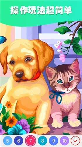 1. 一键涂色:玩家只需点击对应的数字,即可为图案填充相应的颜色,操作简单方便。