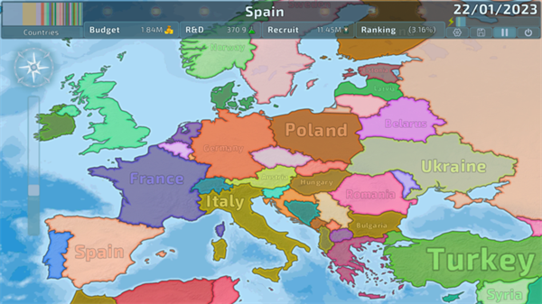 3. 选择国家:在游戏开始前,玩家可以选择不同的国家进行扮演,每个国家都有其独特的初始条件和资源。