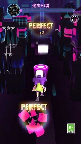 1. 音乐节奏挑战:玩家需要掌握音乐的节奏,通过滑动屏幕控制主角进行各种动作,如跳跃、滑行等,以完成音乐节奏的“卡片点”,并到达终点。