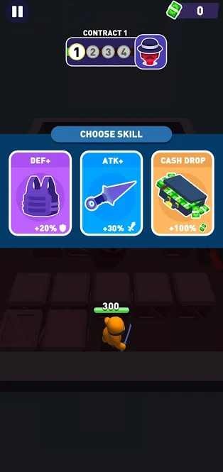 3. 装备升级:击败敌人获取资源,解锁武器与防具,强化攻击力、移速或隐身时长。