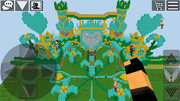 支持8人在线协作,玩家可共同建造城市、挑战副本或参与PVP对战。游戏内置全球聊天室与作品分享平台,玩家可参观他人服务器并下载地图模板。