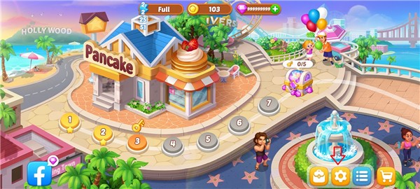 游戏涵盖全球数十个城市,每个城市设有独立主题餐厅(如东京寿司店、巴黎烘焙坊、纽约汉堡店等)。玩家需通过关卡挑战解锁新城市,学习当地特色菜谱(如寿司、法式甜点、美式披萨),并收集稀有食材(如北海道三文鱼、法国黑松露)。每个餐厅的装修风格、顾客群体和烹饪工具均高度还原地域特色。
