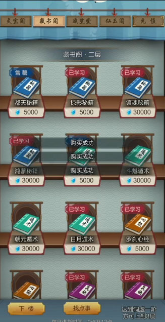 1. 修炼系统:玩家可以通过修炼来提升自己的修为,包括内功、外功、法术等不同方面的修炼。