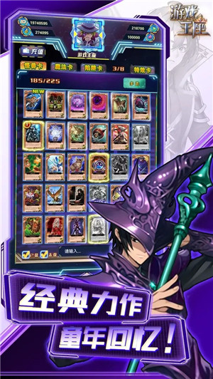 《游戏王座》是一款专为安卓平台设计卡牌策略手机游戏。它融合经典卡牌游戏的元素与现代手机操作的便捷性,为玩家提供了一个既怀旧又充满挑战的数字游戏世界。游戏以《游戏王》为蓝本,保留了原作中的经典卡牌角色、策略对战模式和丰富的剧情内容,同时加入了许多创新元素,为玩家带来全新的游戏体验。