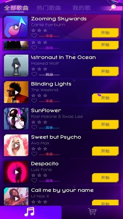 2. 难度升级:随着游戏进程,歌曲难度逐渐提升,包括速度加快、音符复杂度增加等,考验玩家的反应速度和节奏感。