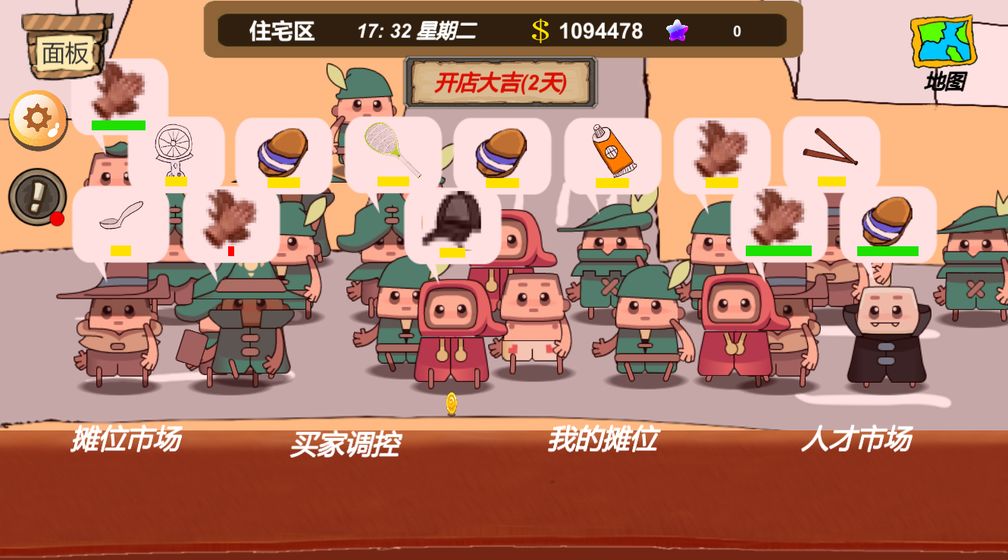 《地摊大亨》是一款模拟经营类游戏,玩家将扮演一位初出茅庐的地摊小贩,通过智慧与努力,逐步扩大自己的商业帝国。游戏以复古的画风和轻松愉快的氛围,带领玩家体验从街头小贩到商业巨头的传奇旅程。