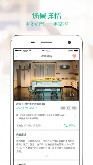 满足拍摄制作与场景服务需求,为影视人及其他各类视频拍摄者搭建了一个真实高效、有供给、有需求的场景服务平台。