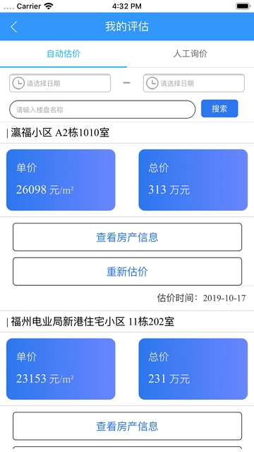 智估房是一款基于大数据为金融机构、政府部门、房地企业等相关单位或个人提供简单、快捷、专业房价估价服务的手机应用产品。免费评估:除了具有专业资质的房产评估公司以外,还有一种新型的网络二手房评估也已趋于成熟,国内有些大型的房产类网站,或者拥有房产频道的综合性网站均开始为消费者提供免费评估,但是要注意,这些网络提供的评估结果不具备法律效应,只能做个参考。