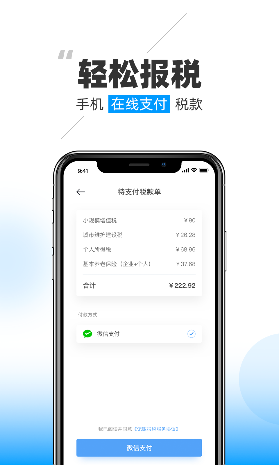 智能系统专业计算应付税款,微信钱包一键付费报税;