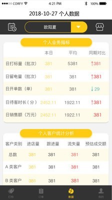 个人业务指标统计、个人客户统计分析等都可以实时查询。