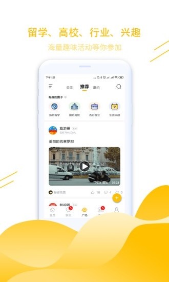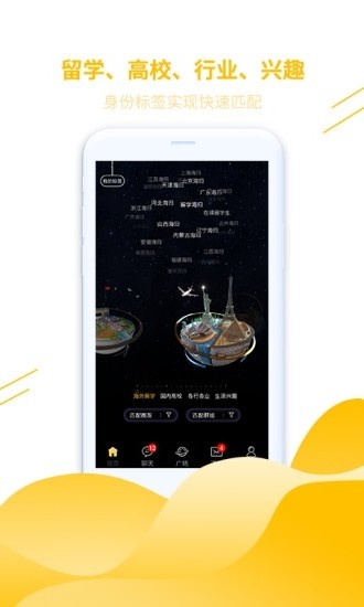 1. 圈子 - 涵盖海外留学、国内高校、各行各业、生活兴趣四类社群,是适合留学海归和高校校友的兴趣交友职业交流聚集地