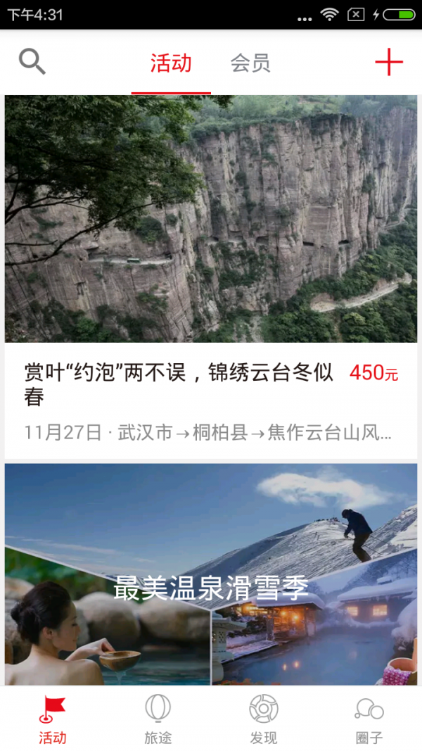 旅途:所有已加入的活动在这里都可以找到,点击某个活动就直接进入到讨论圈了,发图、聊天、问问题这里百无禁忌。