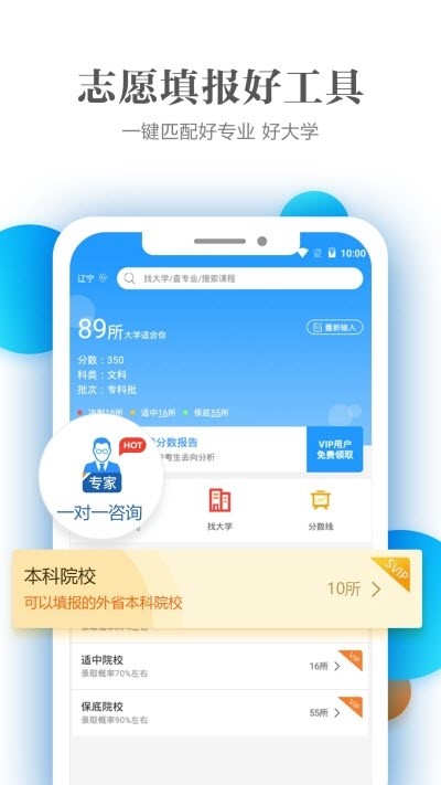 优志愿助手宝手机版在这里可以进行一对一的指导,让用户能够轻松的找到适合自己的志愿学校,根据自己想要报考的科目提供最优质的建议,有任何问题都能咨询平台上专业的老师,汇聚了全国各大院校,为用户提供了智能匹配功能,可以通过输入信息来准确匹配分数和省份,以及此外,还提供了各所大学的招生信息和分数线,以帮助用户选择最合适的志愿者!