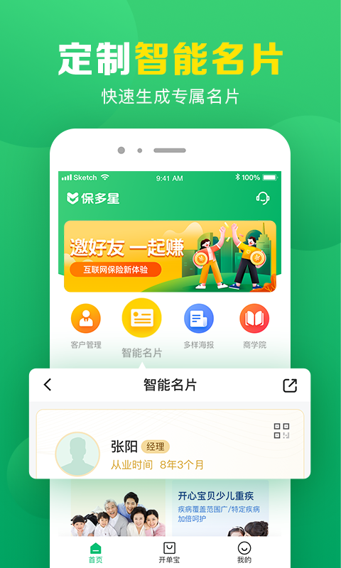 保多星app是一款为保险人量身设计的智慧展业服务工具,通过保多星app不仅可以随时制作智能名片,还有丰富的海报模板,高效拓展智慧管理,多星app是为保险代理人提供的展业工具。保多星app可为代理人定制名片,提供高品质文案和海量多样海报,是推广签单的好帮手。