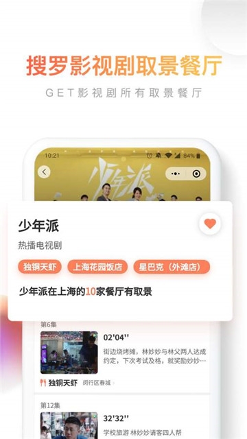 1、查看一些影视剧取景的地方的周边美食很方便,专为吃货提供的美食指南神器;