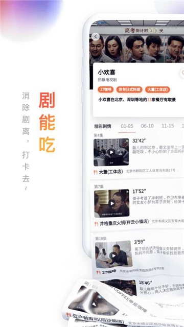 剧能吃app是一款专为喜欢看视频的伙伴提供的影视取景地周边美食指南软件,就是说这里可以方便随时查看影视剧出镜的各个取景地放,也可了解精彩的影视片段,查看附近的没事也方便,对于想出行旅游的伙伴,了解美食,吃喝玩乐更轻松。