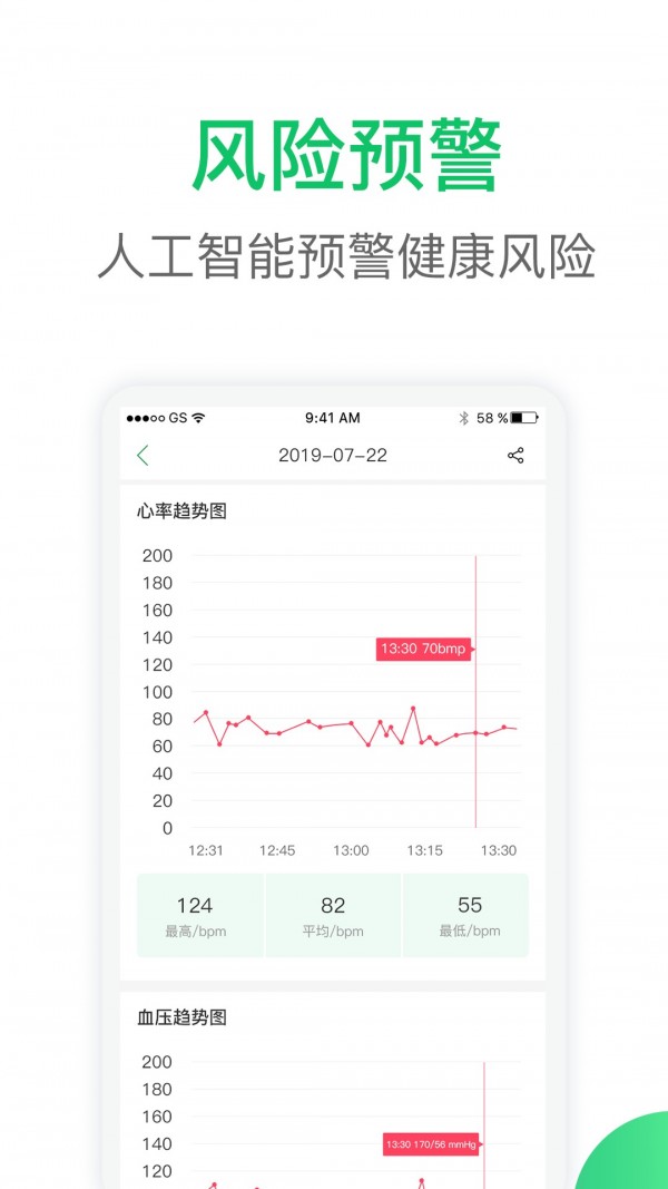提供健康预警服务,全方位为用户的身体健康做守护,实时守护健康变化;