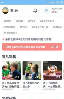 2.有大量育儿达人妈妈们在线为新手爸妈们分享育儿经验,让你可以轻松学习,得到内容。