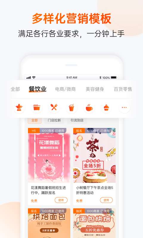 1、通过多样化的营销模板的内容让不同的各行业的用户群体都可以找到所需的营销素材;