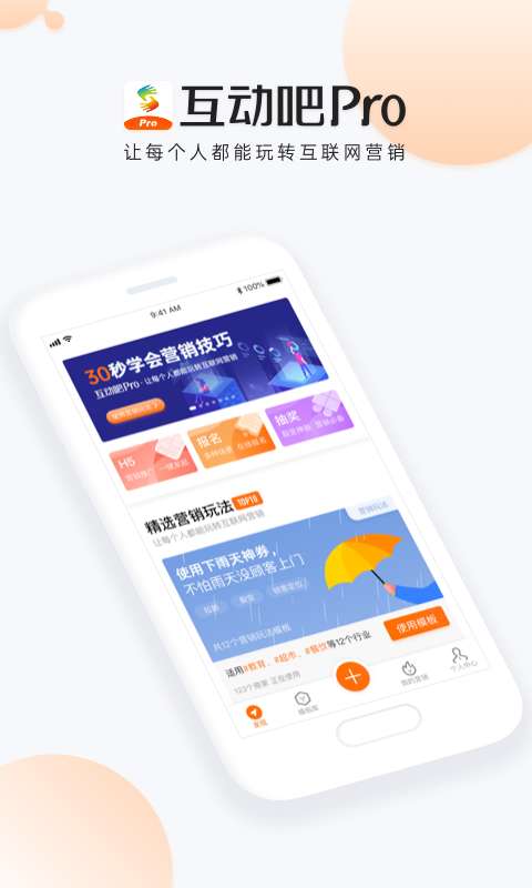 互动吧Proapp一款办公交友的手机软件。上面会有海量的小工具等你来使用,让你能简化你的生活。上面有海量的资讯等你来观看。你还可以在上面进行交流工作上的事情,各种最新的运用模板,还有店面的招租信息等多种信息,你都可以在上面找到,上面的信息均真实有效。有需要的可以下载下来一起交流互动。让你在手机端也可以进行便捷的互联网的营销。互动吧Pro软件中各种创意的营销内容的打造,使得能够更好的发挥营销引流的作用,吸引到更多的用户人群,需要的话就来下载使用吧