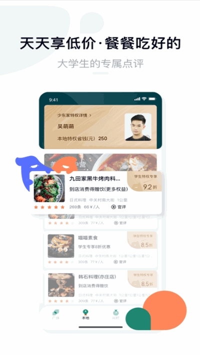 4.大学生还有专属本地特权生活,网罗校园周边各类商家,专属优惠天天享不停。