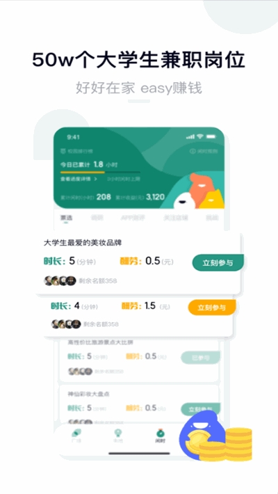 1.满足大学生足不出户线上就可以勤工俭学需求,精心筛选知名品牌,