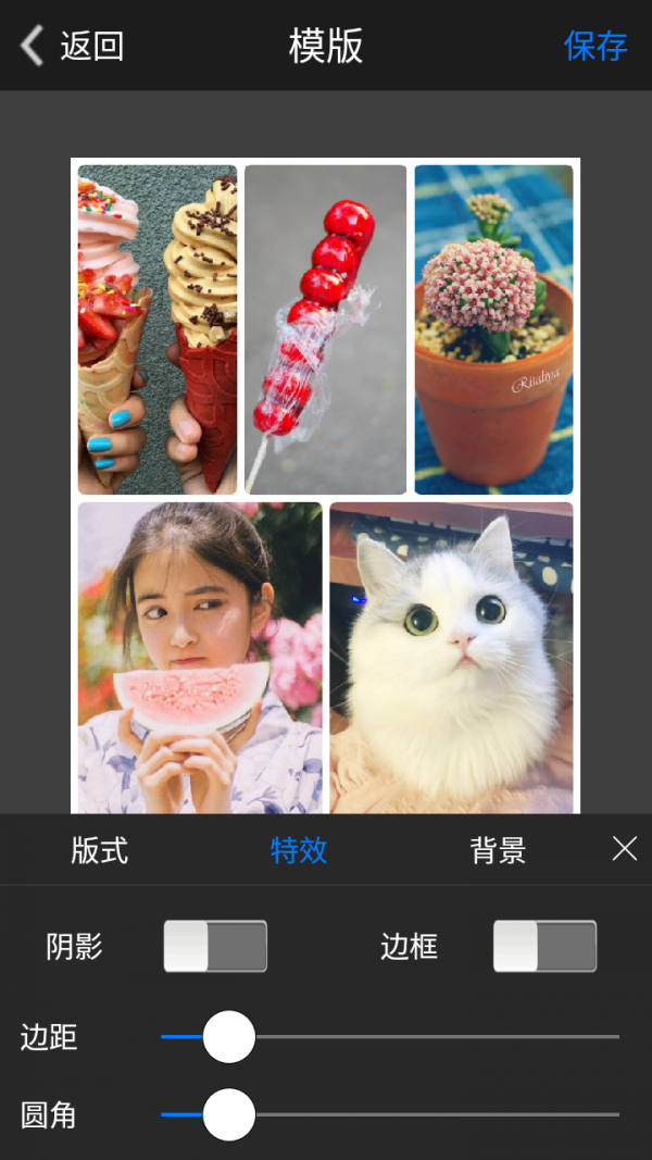 可以给你的照片加入阴影、边框、背景图片、背景颜色等元素,