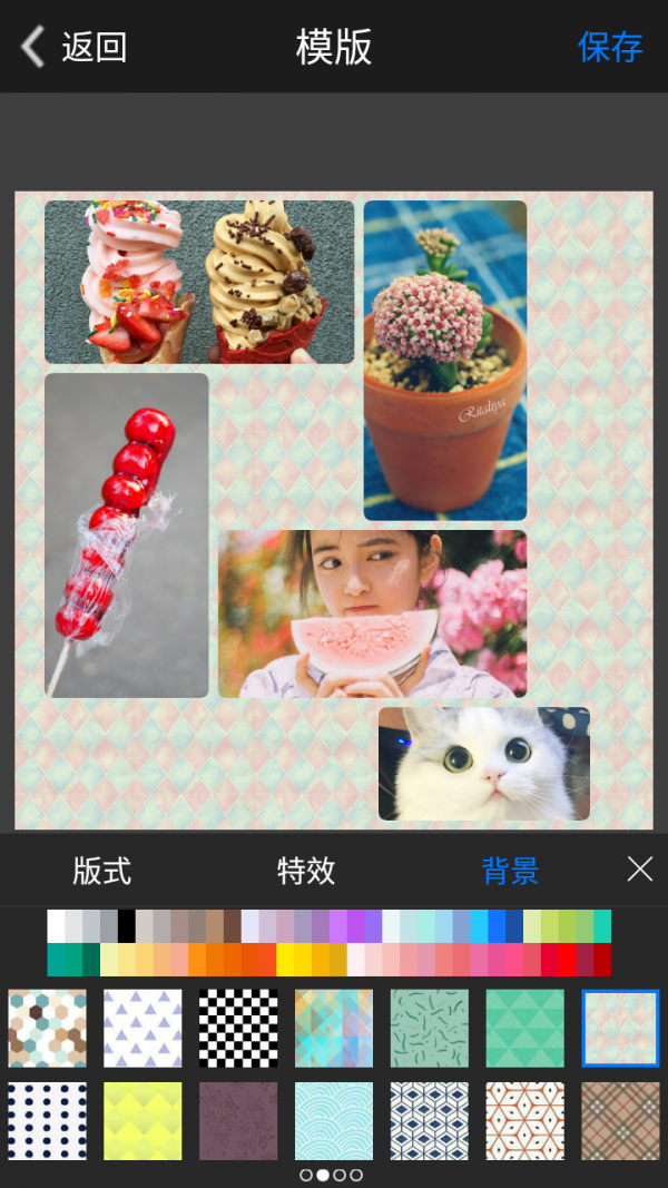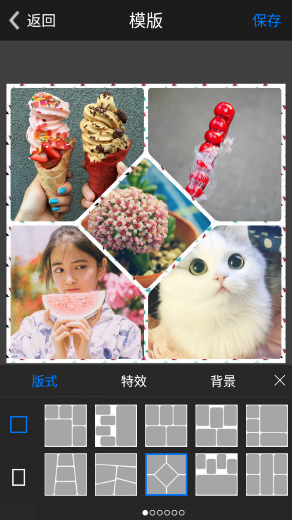 1. 依据选择的照片自动生成不同的模版样式,还能根据需要将模版切换至不同比例。