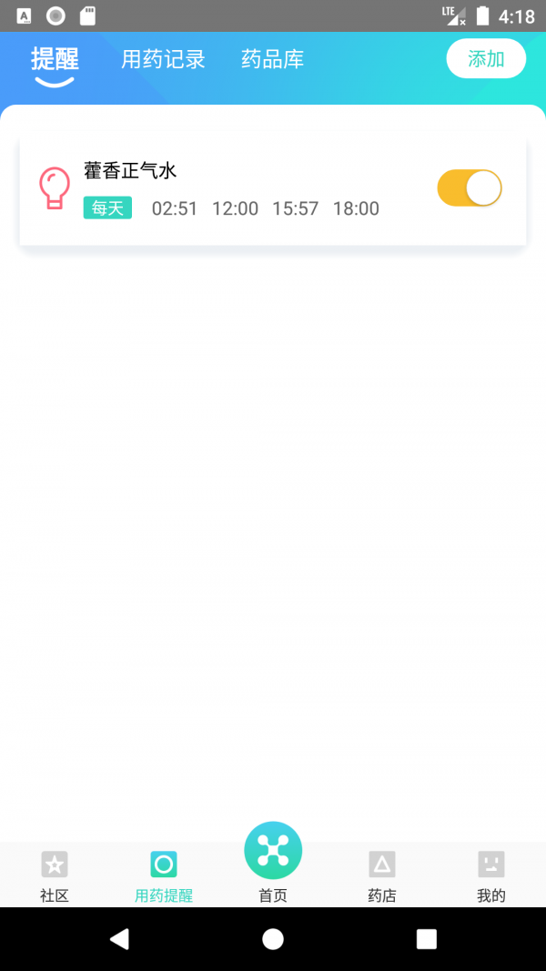 服药提醒:可设置多条服药提醒,记得按时吃药哦