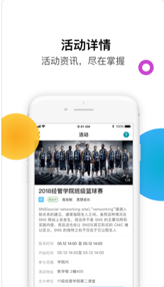 3.轻松报名参与各种各样的校区活动中来,发布活动反馈信息,积极互动交流。
