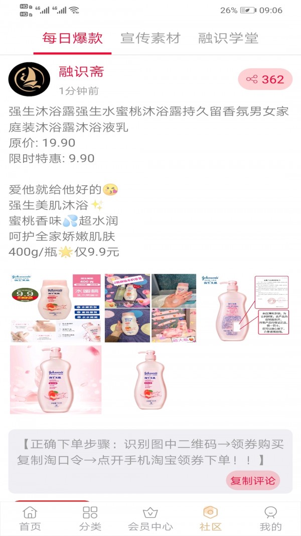 融识斋软件主要用于分享主流电商平台商品,加入CPS联盟,分享高佣热销商品给用户。