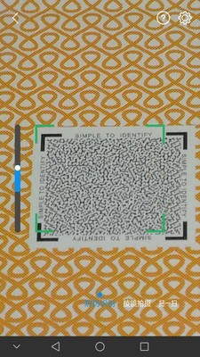 移动相机镜头使要扫描的防伪图像完全置于相机的取景框内,一般的手机有自动调焦功能,如果您的手机没有此功能,请手动调节相机的焦距或移动手机的高度