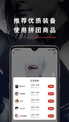 用户还可以点击拳联装备商城,自由选择购买拳联相关装备,如拳套,护膝等体育用品。