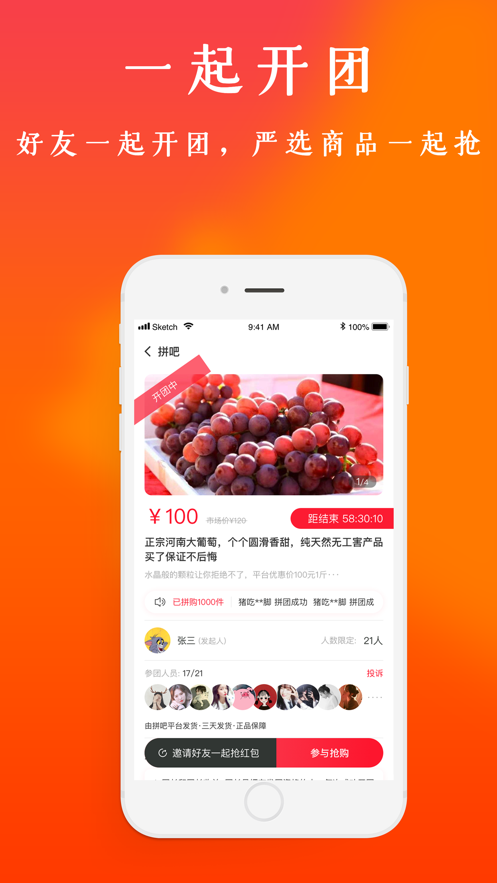 开心拼吧app是一款让大家开心的在线上进行拼团的平台,在这里下单会感觉更加的快速了。平台上的订单都是有很多用户一起组团拼的,所以可以享受很多的优惠打折活动,毕竟单独下单和组团下单的价格肯定不一样,商家们也比较喜欢一次性好多的订单了。这里可以让您购买到很多非常低价的商品,为大家带来的是非常多的商品,都是非常优质的商品,可以在线上放心进行选购。带来的是拼团形式的购物模式,在拼团大厅里,可以和其他小伙伴一起进行拼团购买,拼团价格非常实惠,让您可以用低价就可以购买高质量的商品,非常的超值划算。您还可以平台上建立自己的社区,和更多的人进行良好的互动交流,这里能够让您感受到社交带来的乐趣,有喜欢的用户赶快来下载体验吧。