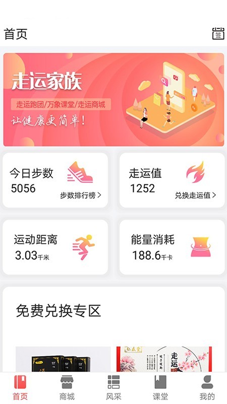 走运家族app是一款为用户打造的线上走路运动平台,走运家族app能够帮助用户管理自己的身体健康,平台能够记录用户的运动步数,这个步数可以用来兑换走运值,而走运值可以兑换线上商城中的各种产品。