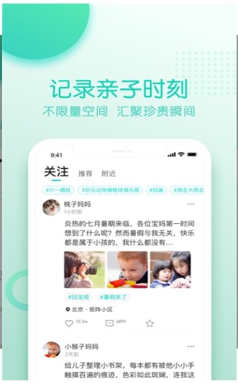 3、社区板块,随时在线聊天,育儿经验,八卦美妆,无话不谈,同城宝妈约见,让你的带娃生活同样多姿多彩。